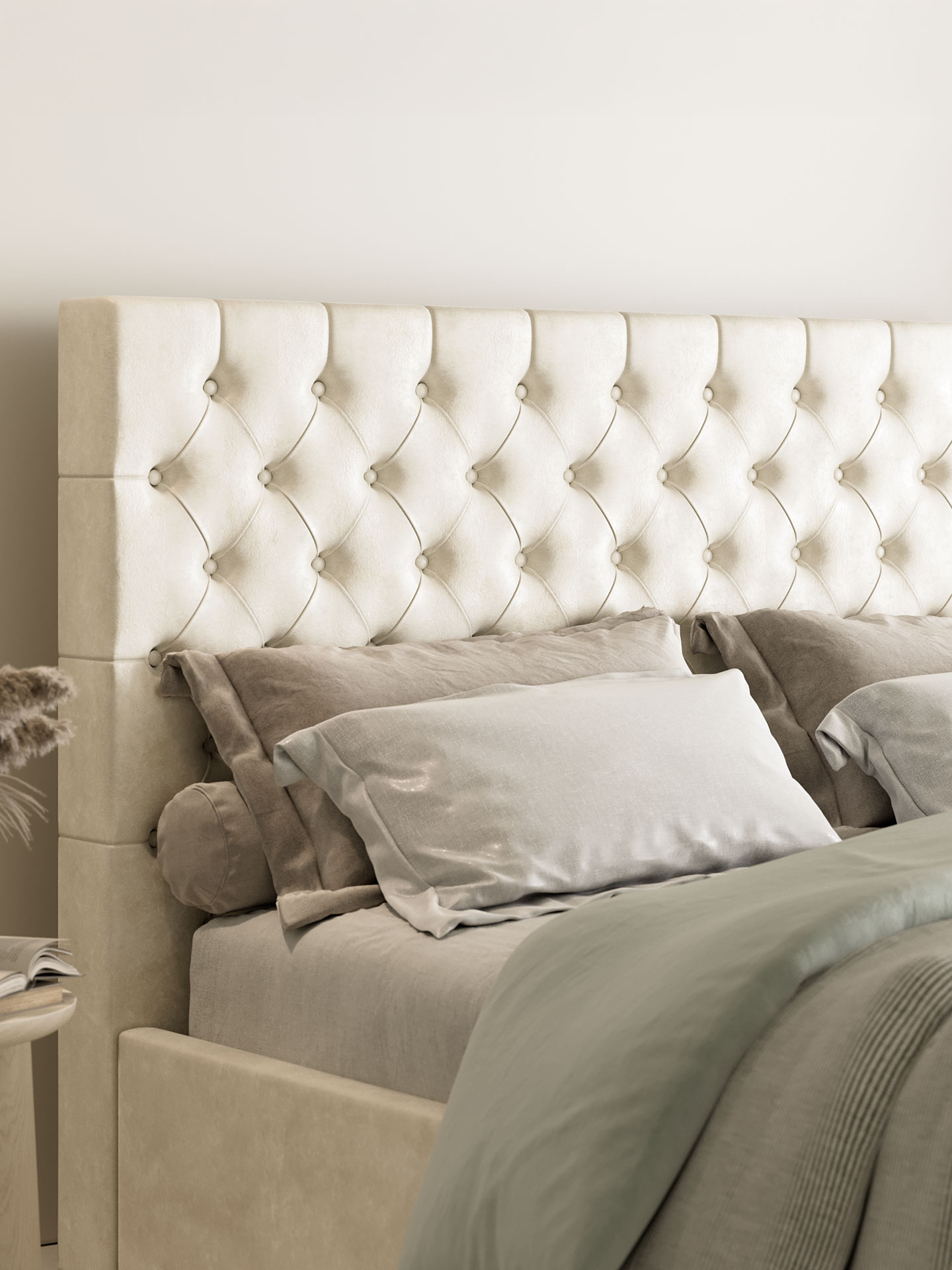 Wähle aus verschiedenen Farben deinen Favoriten. Der edle Bezug aus Samt-Velours fühlt sich weich an und sorgt für eine elegante Optik im Schlafzimmer. Mit 100.000 Scheuertouren ist der Stoff besonders robust für den täglichen Gebrauch. Der Bezug ist fest vernäht. Die bequeme Schaumpolsterung stammt aus zertifizierter Fertigung. Für Stabilität sorgt ein massives Holzgestell mit Schichtholz-Komponenten.